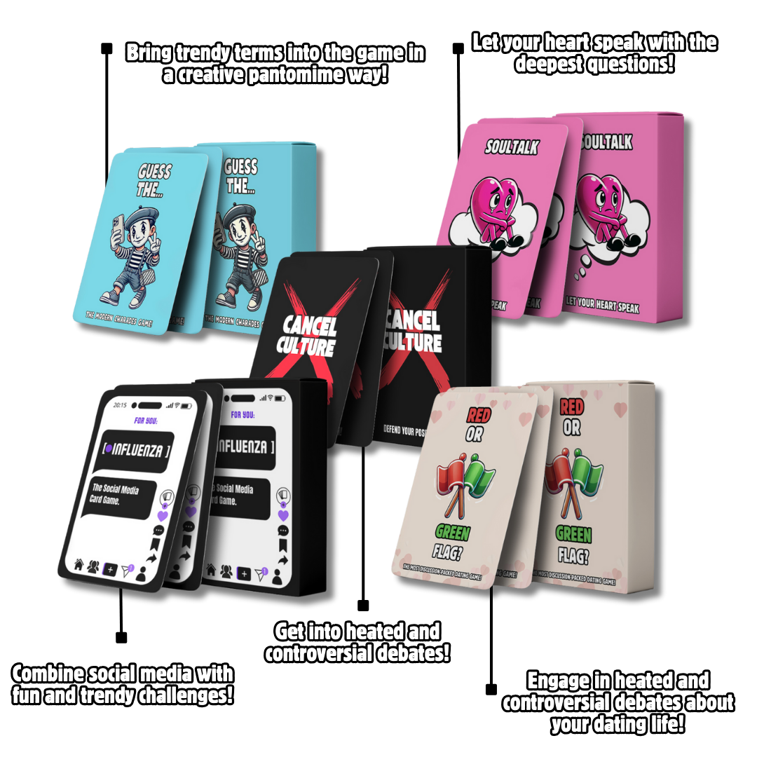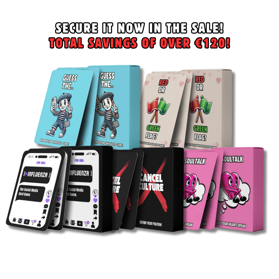 The Mega Girls’ Night Bundle includes five hilarious and exciting card games, plus three exclusive eBooks that are perfect for a girls’ night. Whether revealing secrets, laughing until your stomach hurts, or having deep conversations – this bundle has everything you need for an amazing night with your girlfriends.