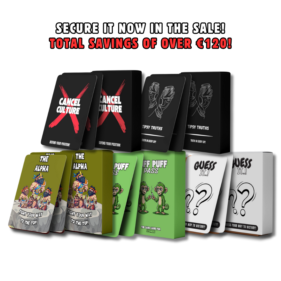 The Mega Men Bundle contains five challenging card games and three exclusive E-books, perfect for exciting game nights with the guys. Whether it’s competitions, knowledge tests, or fun challenges – with this bundle, no night will end in boredom.